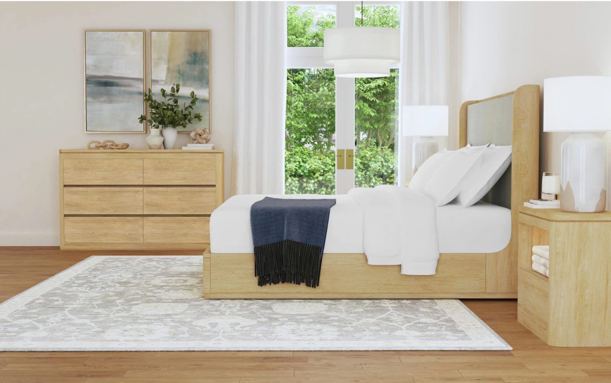 Bedroom set includes: (1) bed (headboard, footboard, and rails), (1) dresser, (1) mirror, and (1) nightstand only, all other products sold separately. Images may not reflect actual size. Color in images may differ in person; see store for actual finish