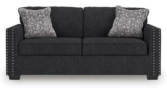 This stunning sofa leaves a lasting impression. Its cozy cushions, chic coal-colored upholstery and striking nailhead trim are a perfect blend of comfort and contemporary designRead More