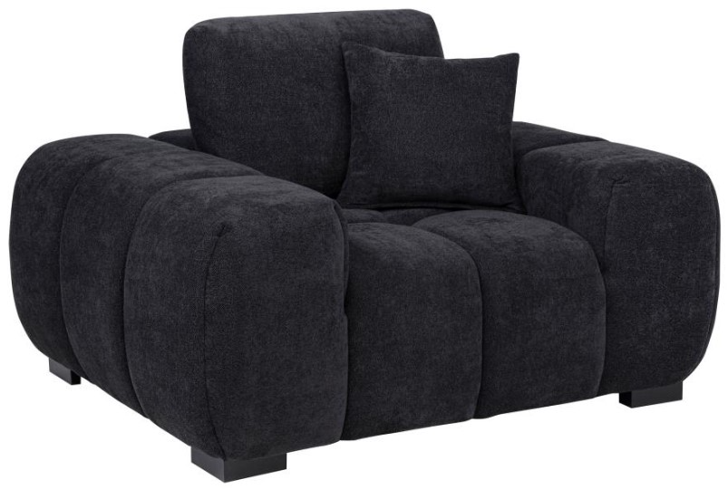 Accent chair with oversized proportions and channel tufting for sculptural statement seating