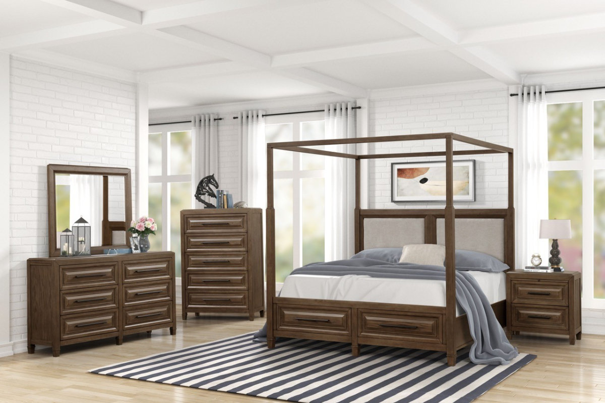 Transform your space with the bold and contemporary Cubed 6-Piece King Canopy Storage Bedroom Set—where clean lines, smart storage, and striking design come together. This set features a dramatic canopy bed frame paired with built-in storage compartments, combining form and function for modern living.Read More