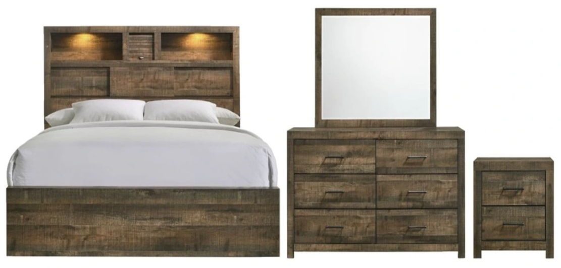 *Bedroom set includes: (1) bed (headboard, footboard, and rails), (1) dresser, (1) mirror, and (1) nightstand only, all other products sold separately. Images may not reflect actual size. Color in images may differ in person; see store for actual finish