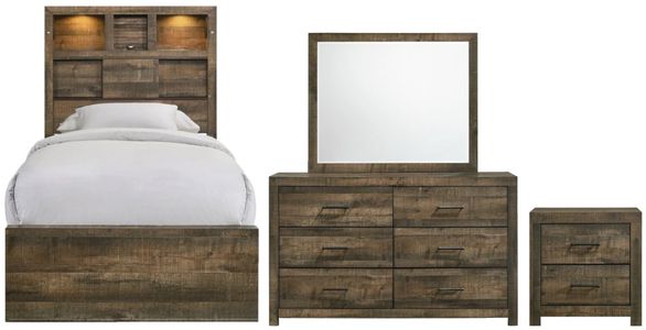*Bedroom set includes: (1) bed (headboard, footboard, and rails), (1) dresser, (1) mirror, and (1) nightstand only, all other products sold separately. Images may not reflect actual size. Color in images may differ in person; see store for actual finish