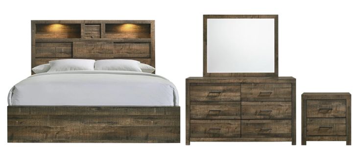 *Bedroom set includes: (1) bed (headboard, footboard, and rails), (1) dresser, (1) mirror, and (1) nightstand only, all other products sold separately. Images may not reflect actual size. Color in images may differ in person; see store for actual finish