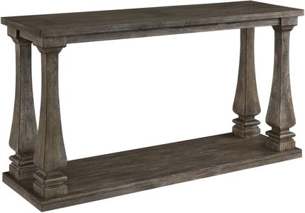Homey. Hearty. Heavenly hued. Luring with a distressed weathered gray finish and square baluster legs set on a broad lower shelf for great presence, this sofa table is sure to make your homestead feel that much more like home.Read More