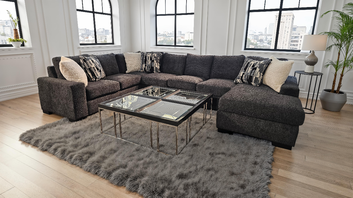 The oversized Fox 3 piece sectional is covered in a textured faux fur fabric and includes six accent pillows. It features pocketed coil seating for longevity and comfortRead More