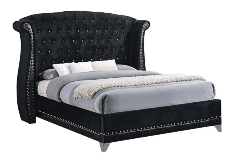 Experience elevated design with the Gabby Collection featuring a black velvet tufted headboard with faux crystal buttons & chrome nailhead trim.Read More