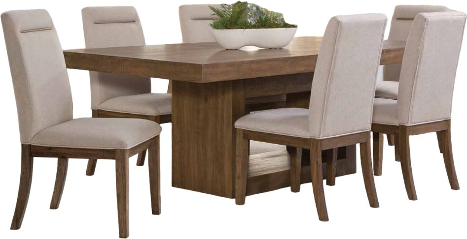 Sophisticated and elegant but with a casual accent, the Garlotti Dining Collection is built to shine in any environment.A distressed toffee finish blends with a sophisticated modern profile in a relaxed style-blending design marked by clean, crisp lines.Read More