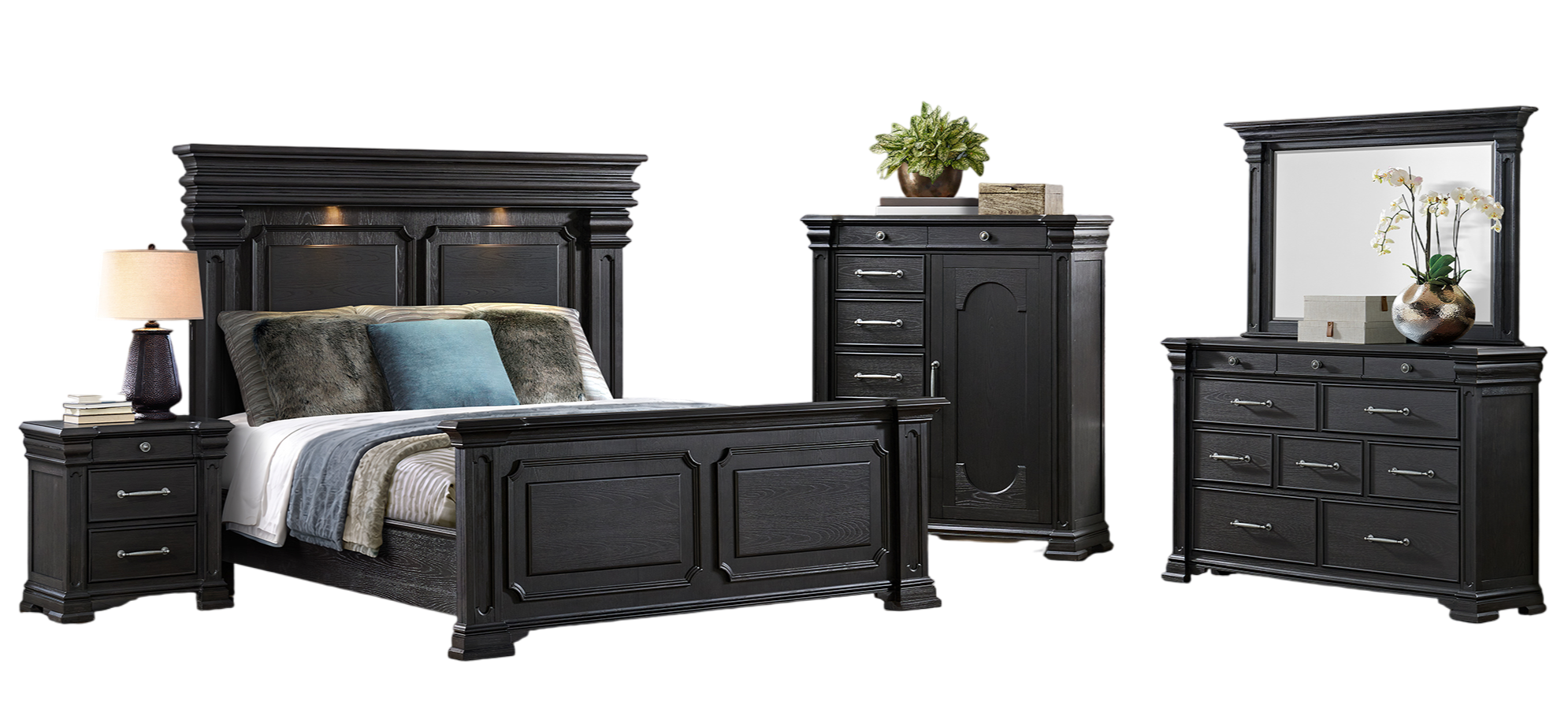 Crafted with quality and style, the King collection Queen Bedroom set in Black is a practical and refined addition to your home’s decor. With solid wood framing and a high-quality oak veneer, this piece is designed for both style and durability.Read More