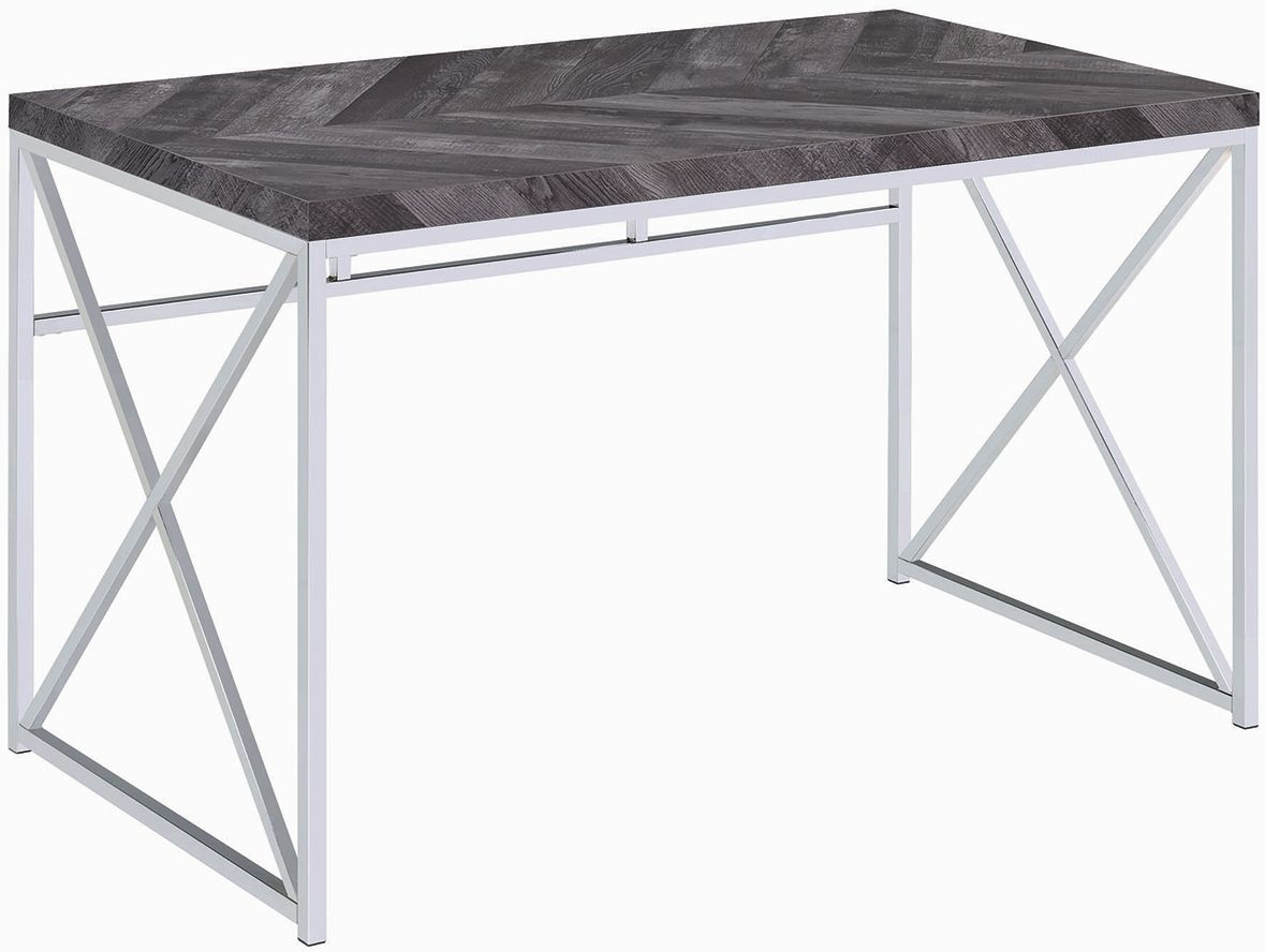 Sleek and minimalistic, the Grimma collection livens up your workspace. The rustic finish, herringbone pattern, and polished chrome metal add a dash of fashionable flair and understated style. Whether you’re working on the next great novel or working on your latest project, this delightful Coaster® collection is exactly what you need.