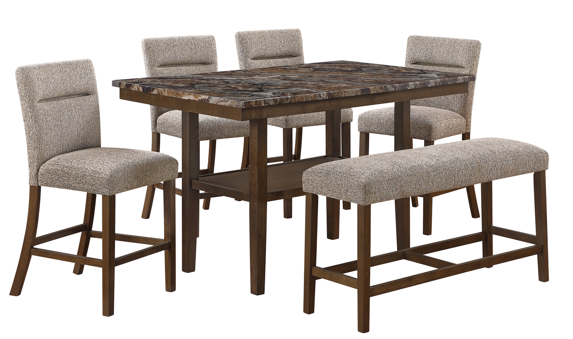 Includes:(1) Bar dining table and (4) bar stools and (1) Bench