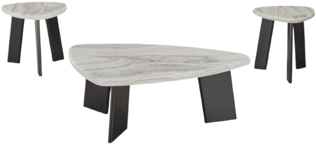 Instantly create a casually cool vibe with this occasional table set. You'll love the striking contrast between its chic faux marble top and bold black legs. The unique guitar-pick shape is not only stylish and contemporary, but also makes the most of your small-space living area.Read More