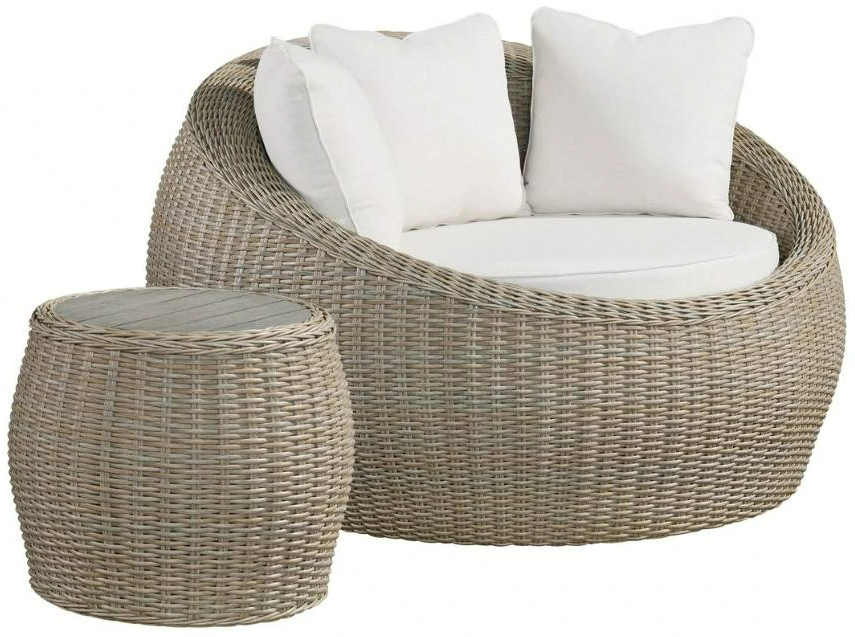 This set features a cozy tan and Olefin White Cream design. The cuddler chair offers plush comfort, while the matching end table complements the look with a clean, modern aesthetic, ideal for stylish, coordinated outdoor spaces.Read More