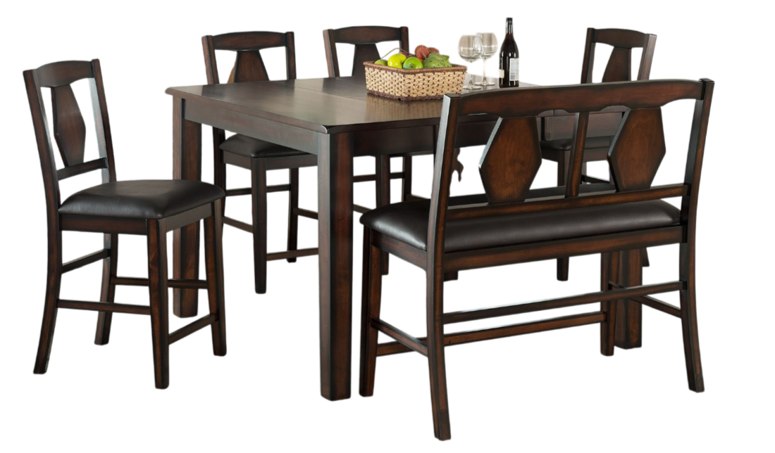 * Table, 4 counter height chairs and 1 counter height bench all other products are sold separately. Product color in images may differ in person; please see store for actual finish