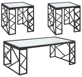 Black metal framing rises to support the white marble-print tempered-glass tops of the Astral Collection, the frame’s intersecting lines creating a distinctly modern profile for your living room.Read More