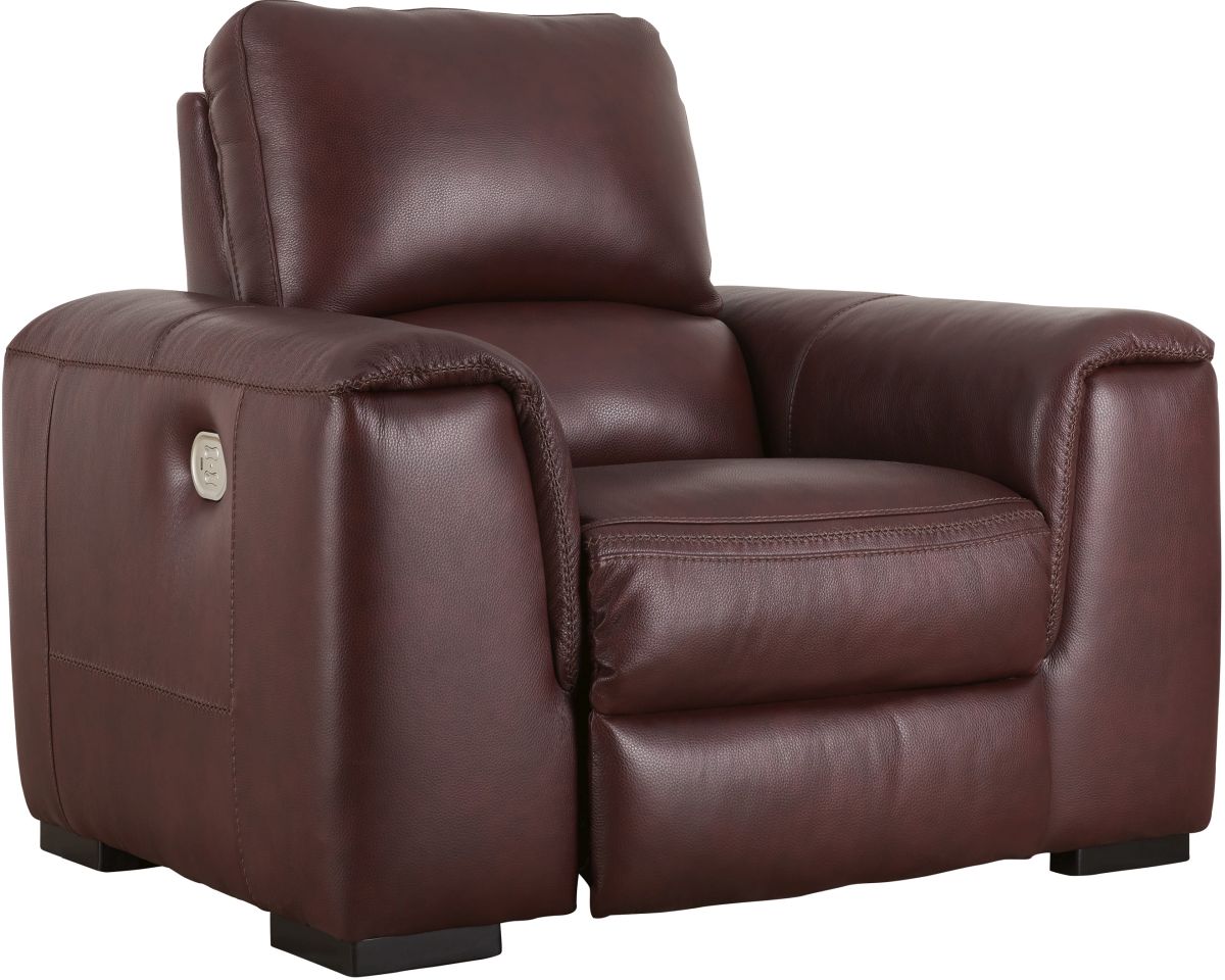 Impressive in scale while keeping an air of refinement, this power recliner stuns with a combination of soft, supple leather and perfectly matched faux leather upholstery in garnet. Sink into the seating area and cater to your comfort with one-touch power reclining and an adjustable headrest.Read More