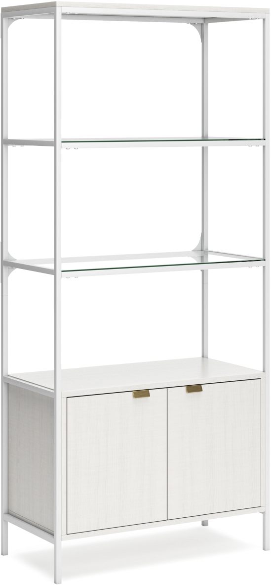 Bring your vision of a modern home workspace to life with this sleekly designed large bookcase. Its linear construction and white finish keep things minimal, while goldtone hardware on the double-door cabinet adds subtle refinement.Read More