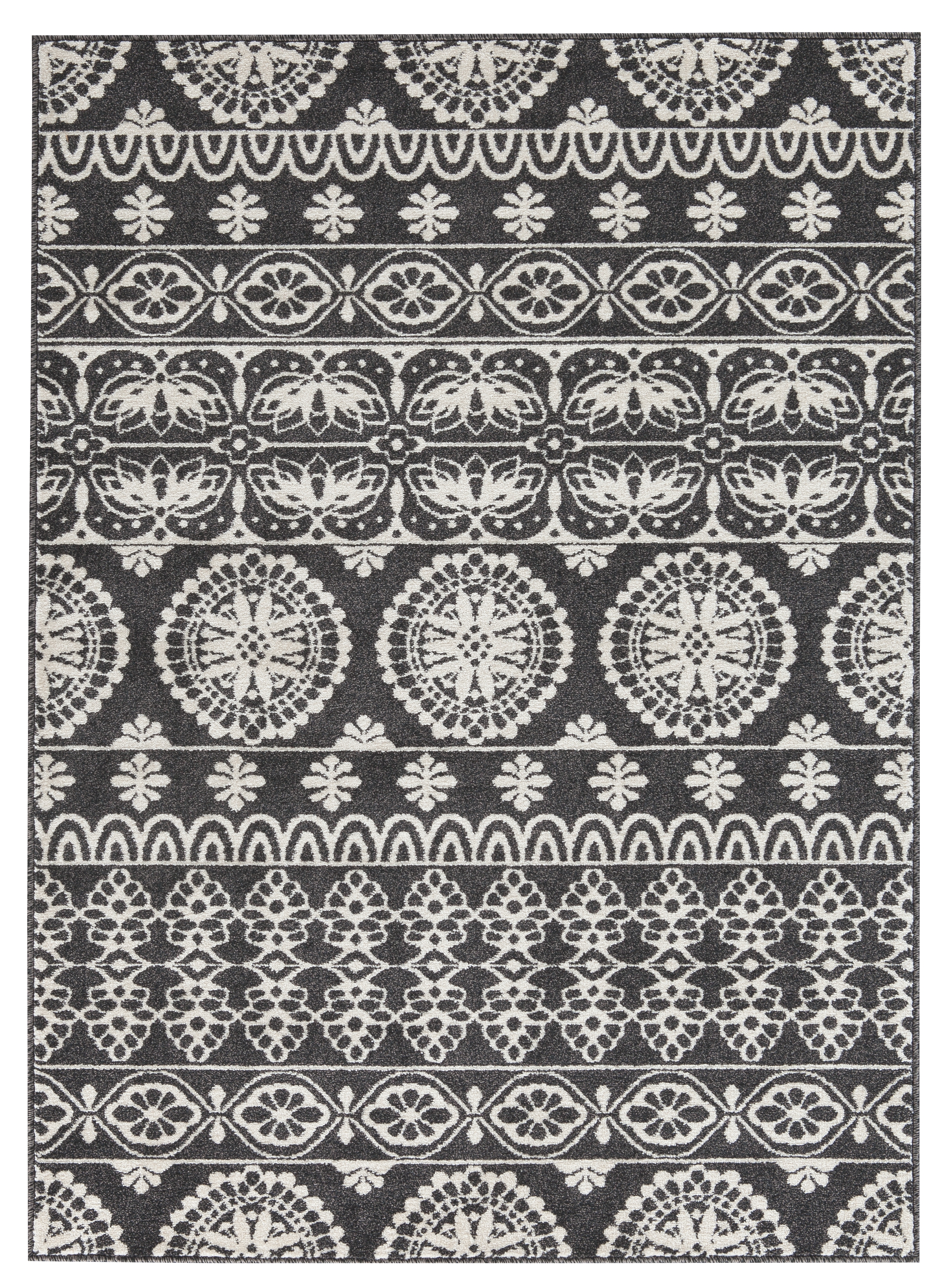 Step onto the machine-woven, 8mm pile of the large, Jicarilla rug for a delightful treat for your feet. The symmetrical, two-tone floral pattern effortlessly integrates with your home’s look and complements your taste.