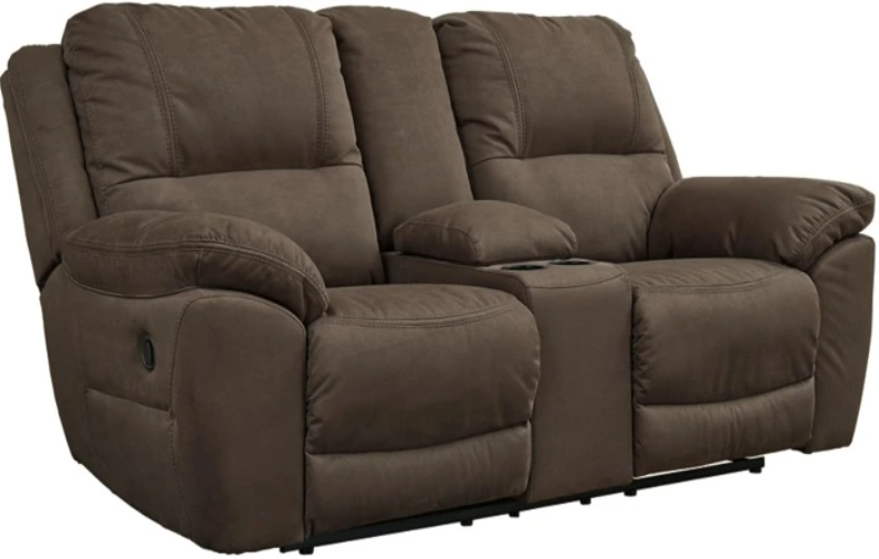 Kick back, relax, and enjoy some sports on TV with this reclining loveseat. You will love its double stuffed pillow top arms and soft-as-suede faux leather upholstery. The family-friendly espresso color and creative stitching add panache. Recline in comfort, thanks to the space-efficient zero wall design.Read More