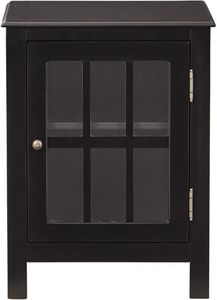 Casual style and function are made easy with this accent cabinet. This versatile storage solution in a black finish is a perfect place to stack bowls, plates and linens. The lattice door front with clear inset glass allows you to show off its contents, allowing for endless decorative possibilities.Read More
