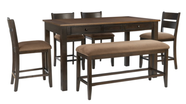 This Special 6 piece counter height dining table set with upholstered bar stools and bench elevates the art of rustic styleRead More