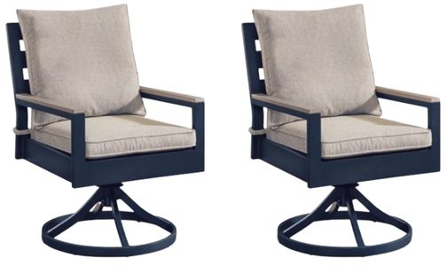 Easy-breezy beauty, made to withstand the elements. This swivel chair makes a serene statement on your deck or patio with its soothing shade of blue and contrasting wood-look arms. A cushioned seat keeps you comfy as you lounge. And with durable materials providing added longevity, this chair is a smartly-stylish addition to your outdoor oasis.Read More