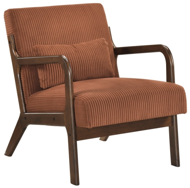 Introduce sophisticated mid-century style to your living room or reading nook with this striking accent chair. Featuring a robust solid wood frame, the smooth brown finished arms and legs provide sharp, clean lines and reliable support. Upholstered in plush, textured corduroy fabric, this chair offers exceptional comfort and visual depth.Read More