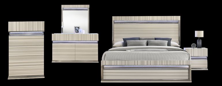 The Valentine Collection is truly special and will make your bedroom the envy of all. The sophisticated light gray wood grain finish, combined with a high gloss lacquer coating, gives it a modern touch. Plus, the textured metallic accents and smooth, gliding hardware add to the elegance. Each piece comes with built-in LED lighting, providing a soft, ambient glow.Read More