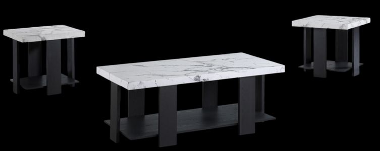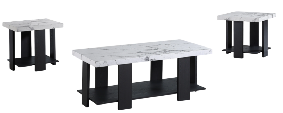A sleek rectangular coffee table with two matching end tables. Clean lines and sturdy frames. Finished in classic white faux marble for a modern, minimal look. Built to last, designed to stand outRead More