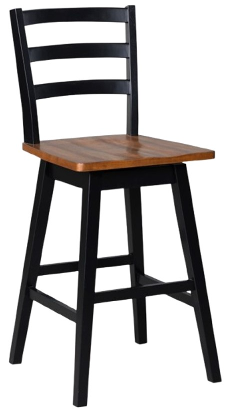 Barstools are made with hardwood frames with contoured swivel seats and integrated foot rest