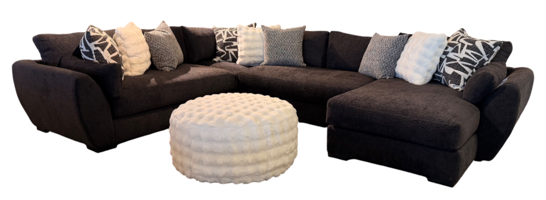 The oversized Whipped 3 piece sectional is covered in a textured faux fur fabric and includes six accent pillows. It features pocketed coil seating for longevity and comfortRead More